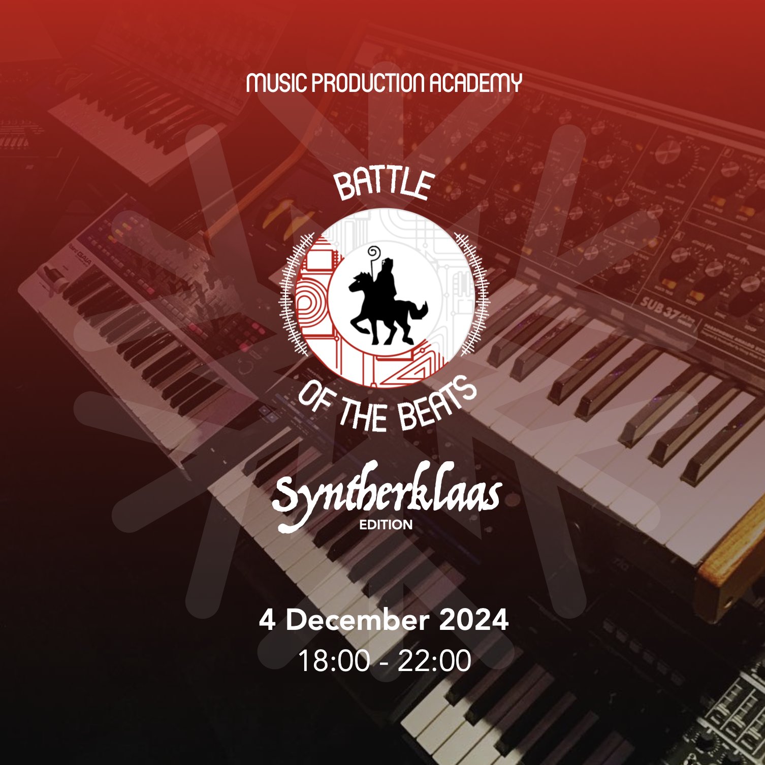 This time, we’re mixing creativity with a bit of chaos and holiday spirit. Each participant creates a sample pack in advance for another producer. At the start of the battle, everyone grabs a random USB stick from the Syntherklaas present bag and must build a track using those samples. Expect good vibes, surprises, and beats that hit harder than pepernoten.
